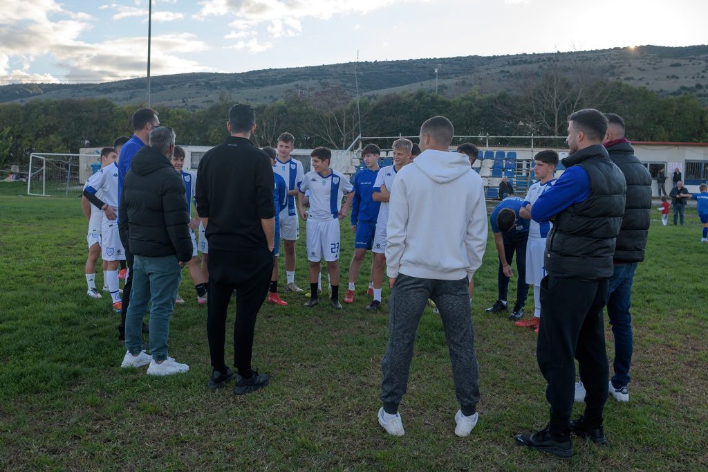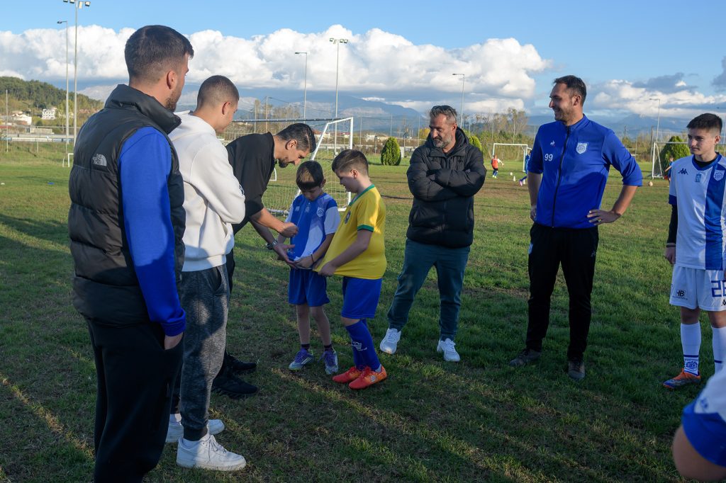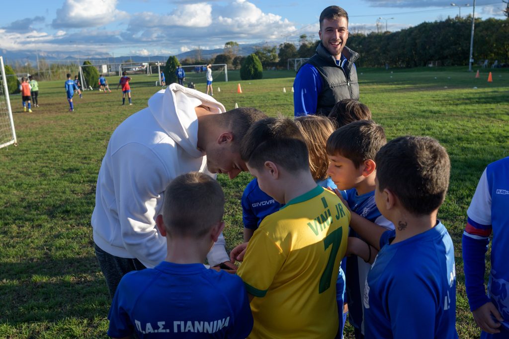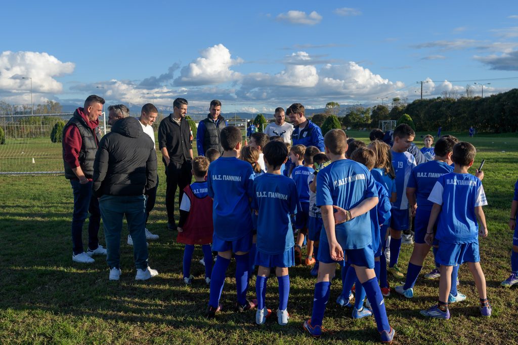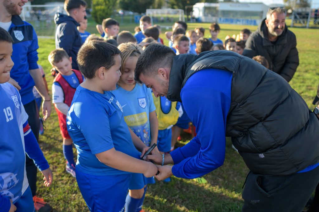 Κατά τη διάρκεια της επίσκεψης τους μοίρασαν αυτόγραφα, μίλησαν με τους μικρούς ποδοσφαιριστές του Π.Α.Σ. και έβγαλαν φωτογραφίες όλοι μαζί.