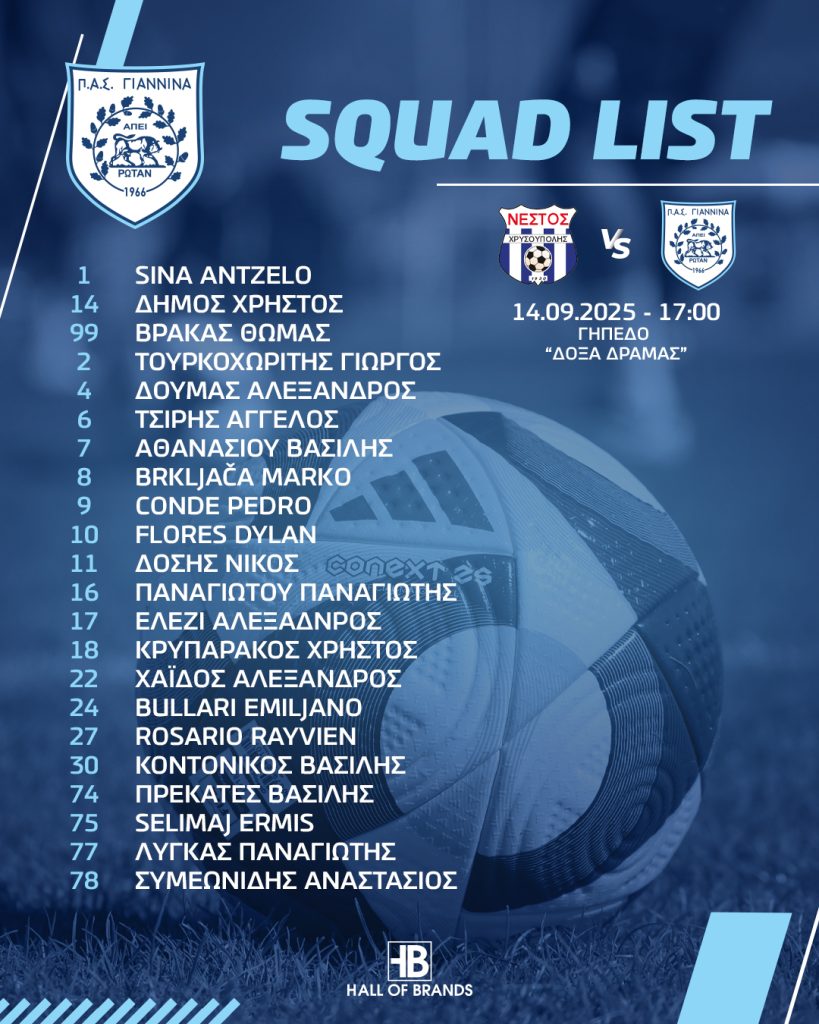 Για την 1η αποστολή της ομάδας μας για το φετινό πρωτάθλημα, ο προπονητής μας κος Κούστας επέλεξε 22 ποδοσφαιριστές, τους: