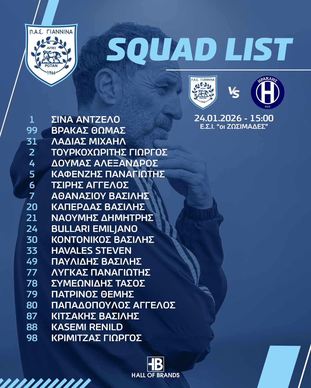 Μετά το τέλος της προπόνησης, ο τεχνικός μας κ.Γκούμας, ανακοίνωσε την αποστολή για τον αγώνα και πιο συγκεκριμένα θα έχει μαζί του, τους: