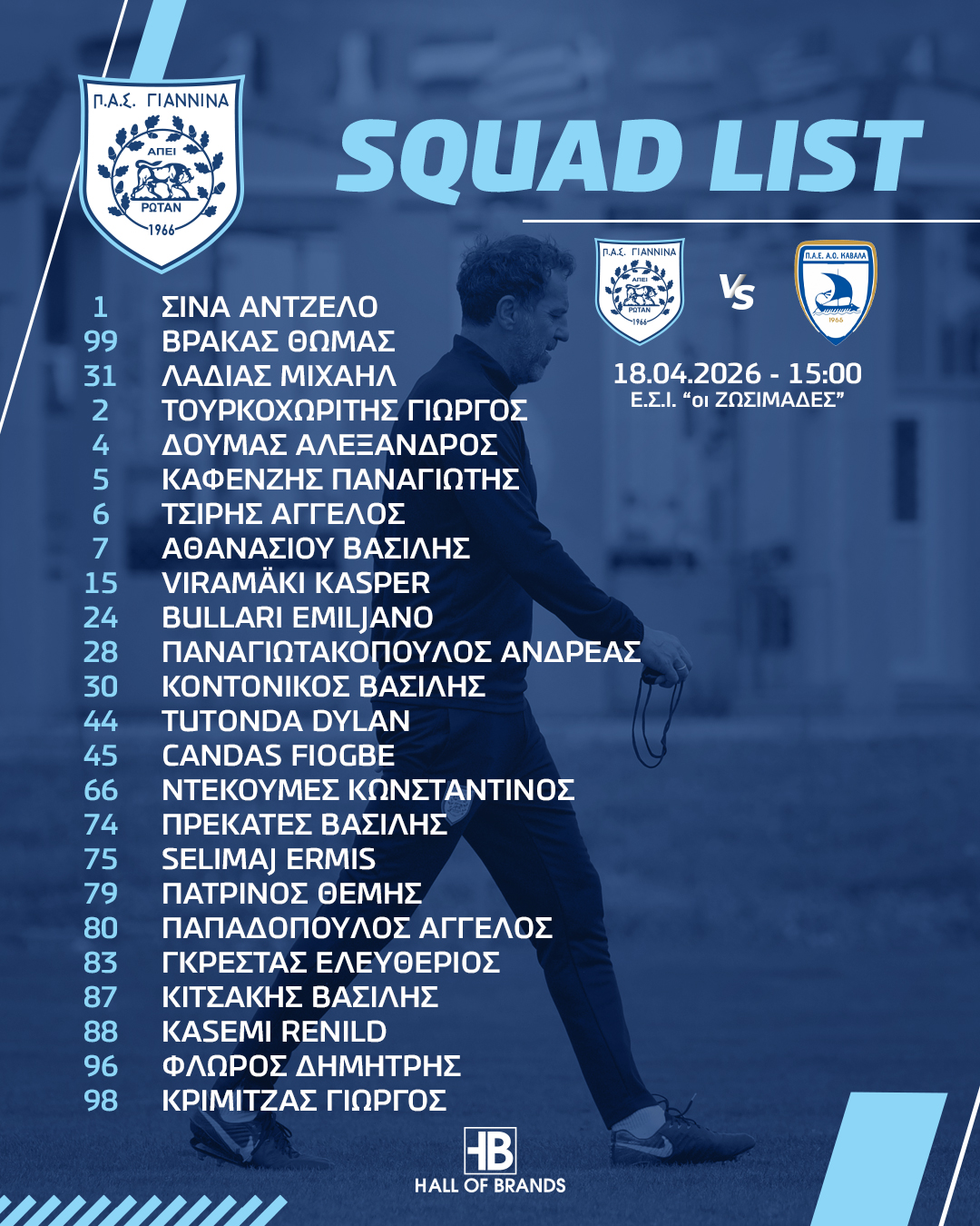 Μετά το τέλος της προπόνησης ο τεχνικός μας κ.Γκούμας ανακοίνωσε την αποστολή της ομάδας μας. Πιο αναλυτικά θα έχει διαθέσιμους 24 ποδοσφαιριστές, τους: