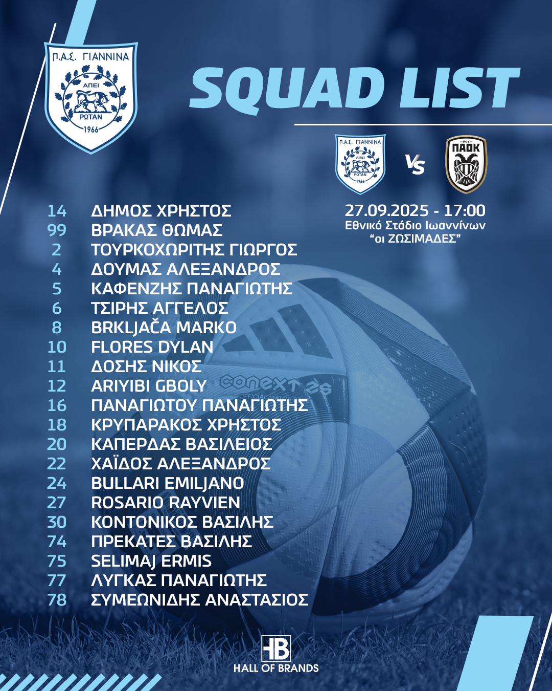 Πιο αναλυτικά στην αποστολή για τον αγώνα πήρε τους: