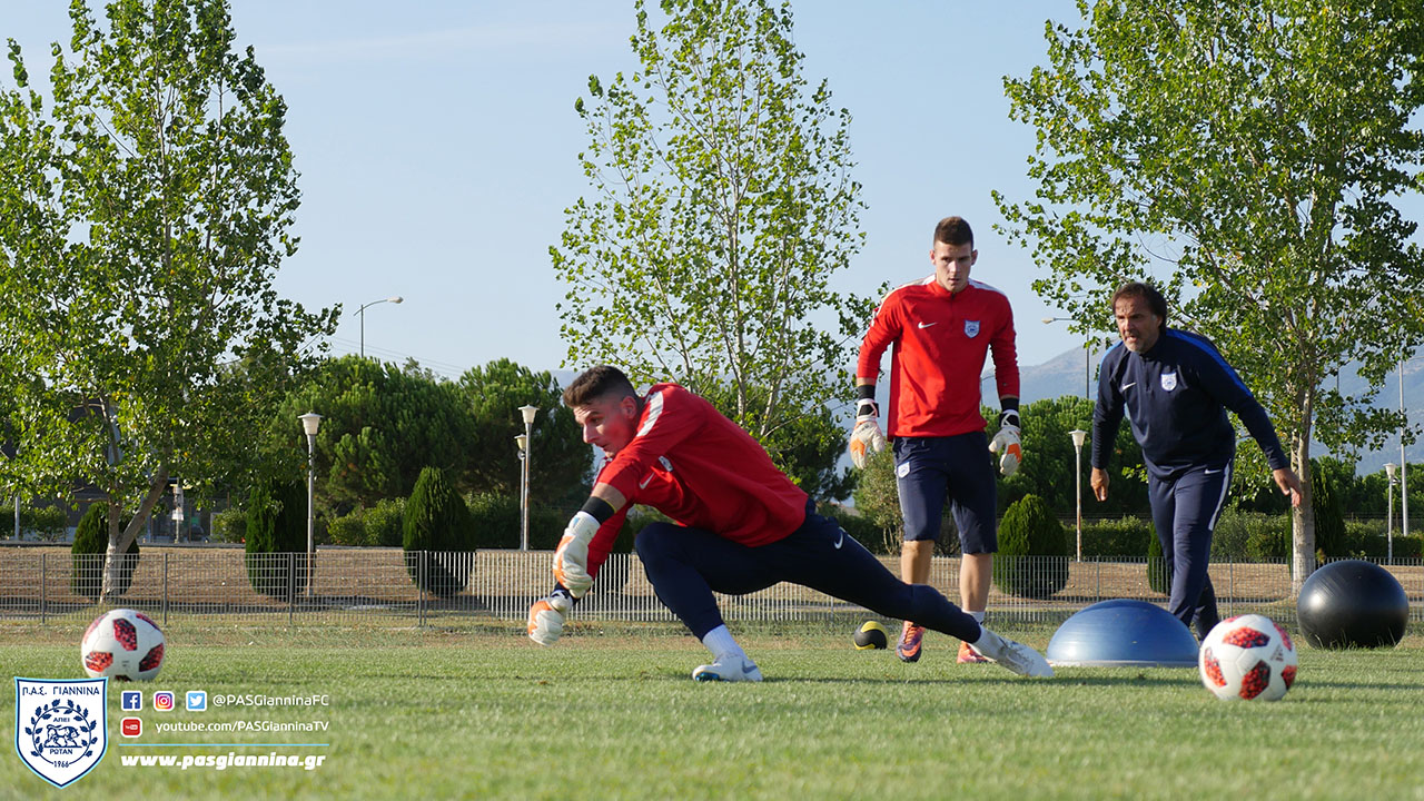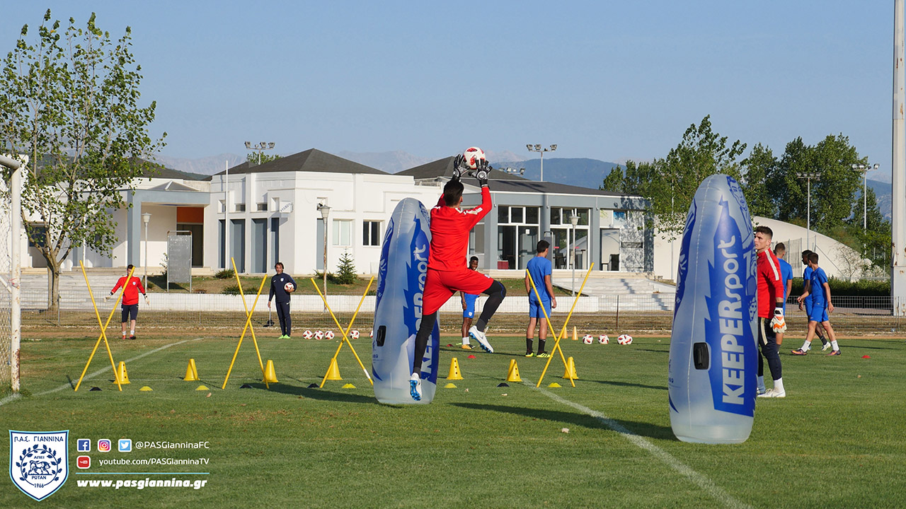 Εντατική και η προπόνηση των τερματοφυλάκων της ομάδας με τον προπονητή τερματοφυλάκων κ.Πλαβούκο να ετοιμάζει εξειδικευμένες ασκήσεις για τον αγώνα.